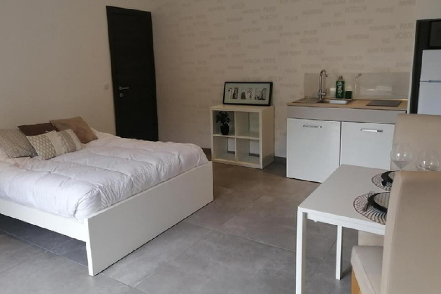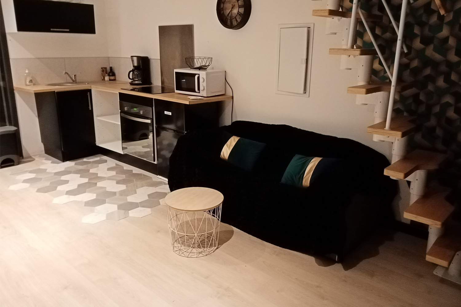 2. And a studio apartment, located on the ground floor of the house, offering a 21 sqm kitchenette and shower room. This outbuilding has access from the inside, allowing it to be used either as a master suite on the ground floor or as a fully independent studio, thanks to its independent external access.