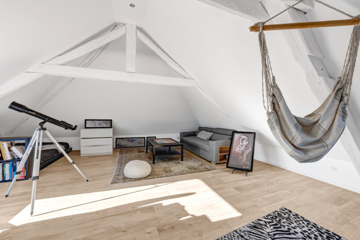 Discover this spacious 54 square metre office on the top floor, offering a glimpse of the Annecy lake. This modular space can be used as an office, a music or games room, or even a TV room. It can also be converted into 2 large bedrooms.
