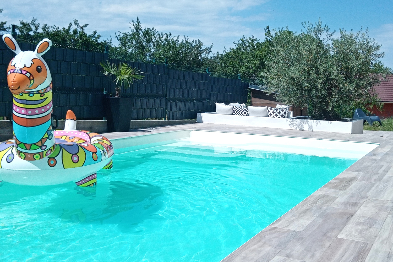 A 900 sqm garden with a garden furniture area right next to the heated swimming pool, a barbecue area and a green area, invites you to relax and enjoy moments of conviviality.