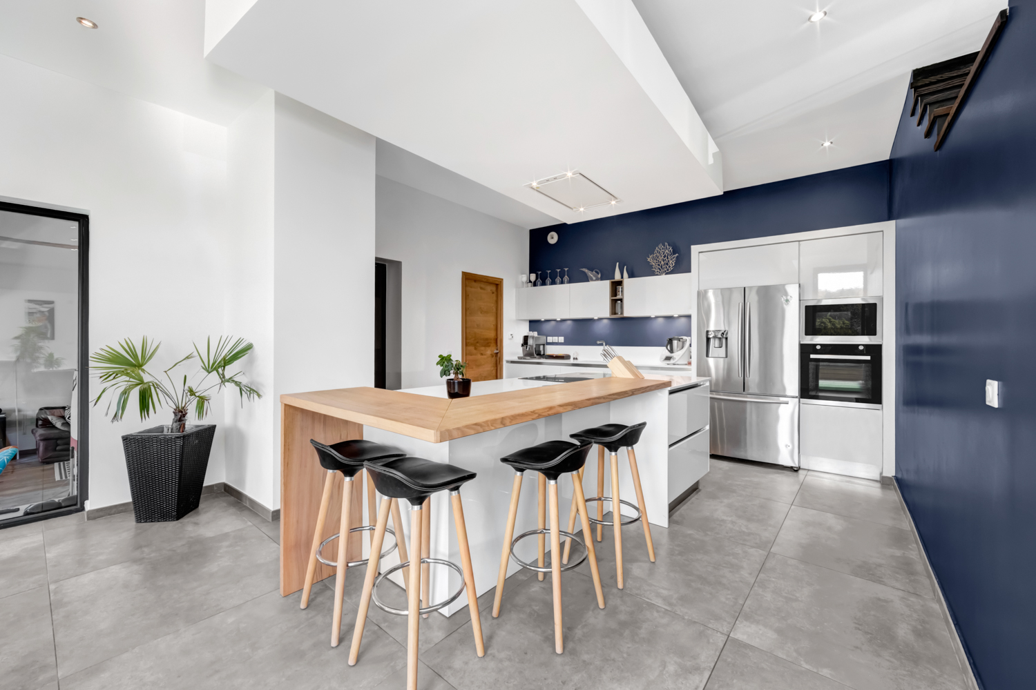 Its suspended solid oak bar and incredible central island guarantee great moments of sharing with family and friends.